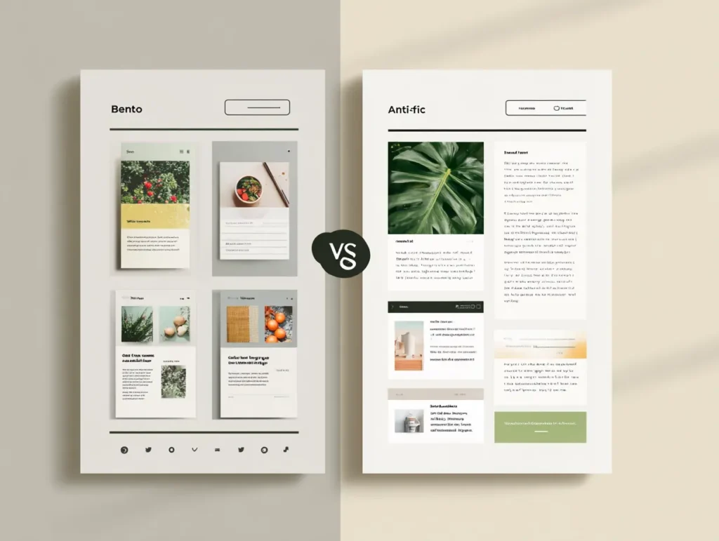On one side, we’ve got the Bento Box style, clean, tidy, like your favorite lunch packed in little squares.